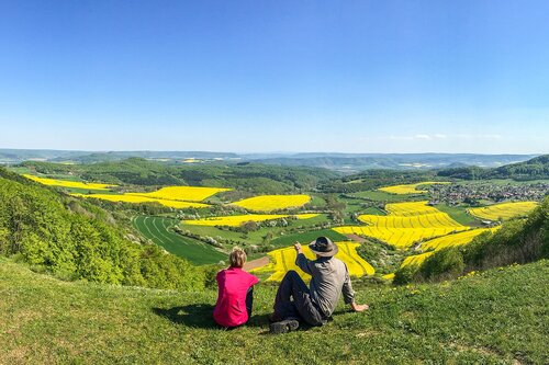 Der 103 Kilometer lange Naturparkweg Leine-Werra zählt zu den schönsten Fernwanderwegen im Herzen Deutschlands. Er verbindet Heilbad Heiligenstadt im Eichsfeld mit Creuzburg im Werratal und führt durch eine abwechslungsreiche Landschaft aus Muschelkalkplateaus, grünen Tälern, ausgedehnten Buchenwäldern und idyllischen Streuobstwiesen. Anspruchsvolle Anstiege werden immer wieder mit einzigartigen Panoramablicken belohnt.